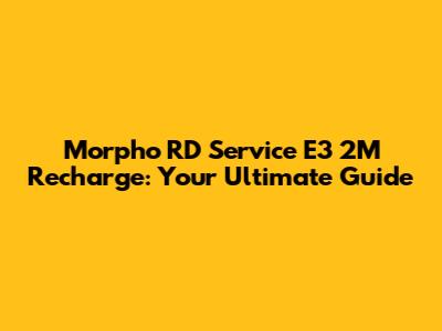 Hey guys! Let's dive into the world of Morpho RD Service E3 2M recharge. It's super important for anyone using Morpho devices, so you can keep things running smoothly. This guide will walk you through everything you need to know, from why you need to recharge to the step-by-step process. Whether you're a newbie or a seasoned pro, we've got you covered. This is the ultimate guide you'll need.