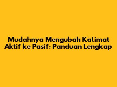 Mengubah kalimat aktif ke pasif adalah keterampilan penting dalam bahasa, guys. Ini bukan hanya tentang mengubah urutan kata; ini tentang mengubah fokus kalimat. Dalam artikel ini, kita akan membahas secara mendalam tentang cara mengubah kalimat aktif ke pasif, mengapa itu penting, dan bagaimana melakukannya dengan benar. Kami akan membahas berbagai contoh, tips, dan trik yang akan membantu kalian menguasai keterampilan ini dengan mudah. Jadi, mari kita mulai!