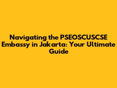 Hey guys! Planning a trip to the PSEOSCUSCSE Embassy in Jakarta? Awesome! Whether you're a seasoned traveler or a first-timer, getting the right info can make all the difference. This comprehensive guide will walk you through everything you need to know, from the embassy's location and services to tips on making your visit smooth and stress-free. We'll cover important stuff like visa applications, consular services, and how to stay updated on the latest news. So, buckle up, because we're about to dive deep into the world of the PSEOSCUSCSE Embassy in Jakarta! Let's get started, shall we?