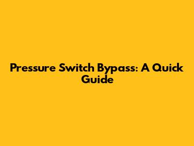 Pressure Switch Bypass: A Quick Guide