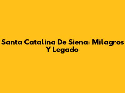Santa Catalina De Siena: Milagros Y Legado
