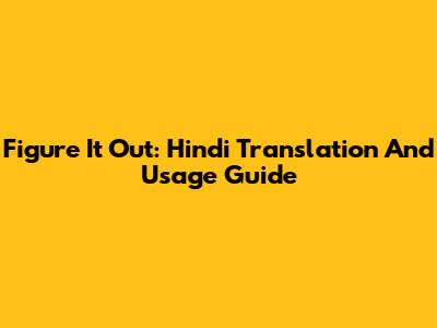 Figure It Out: Hindi Translation And Usage Guide