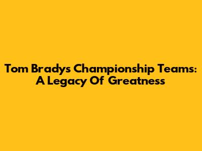 Tom Brady's Championship Teams: A Legacy Of Greatness