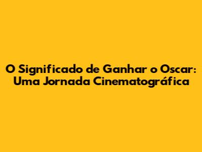Ganhar o Oscar é, sem sombra de dúvida, o auge da carreira de muitos artistas e profissionais da indústria cinematográfica. Mas, afinal, o que significa ganhar o Oscar? É apenas um prêmio, uma estatueta dourada, ou algo muito maior? Neste artigo, vamos mergulhar profundamente no significado de receber essa honraria, explorando seus impactos, sua história e o que ele representa para a cultura popular.