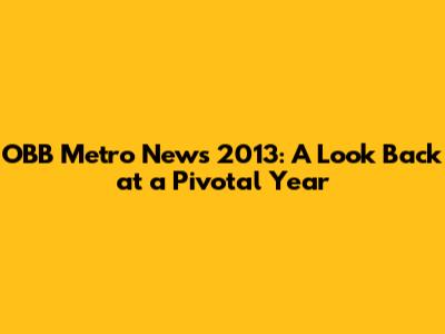 Impact and Legacy: What 2013 Meant for OBB Metro