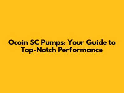 Choosing the Right Ocoin SC Pump for Your Needs