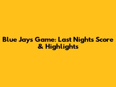 Blue Jays Game: Last Night's Score & Highlights