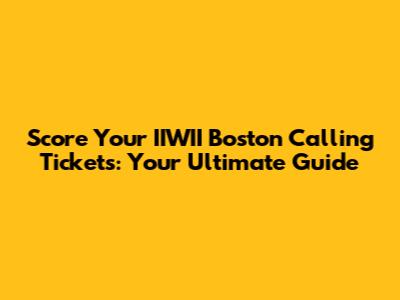 Score Your IIWII Boston Calling Tickets: Your Ultimate Guide