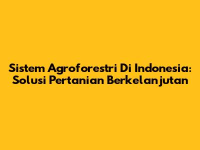 Sistem Agroforestri Di Indonesia: Solusi Pertanian Berkelanjutan