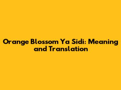 Orange Blossom Ya Sidi Translate: Unveiling the Meaning