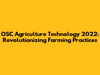 Hey guys! Let's dive into the amazing world of OSC Agriculture Technology 2022. Agriculture, the backbone of our society, has been undergoing a massive transformation thanks to technological advancements. In 2022, we witnessed groundbreaking innovations that are reshaping farming practices, enhancing productivity, and promoting sustainability. This article will explore some of the key highlights and trends from OSC Agriculture Technology 2022, showing you how these advancements are making a real difference in the agricultural sector. From precision farming to vertical agriculture, the future of food production is looking brighter than ever. So, buckle up and get ready to explore the exciting developments that are revolutionizing how we grow and manage our crops.