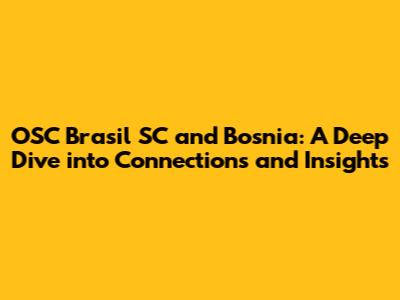 Hey guys! Let's dive deep into something a bit unexpected, but super interesting: the connections between OSC Brasil SC and Bosnia. Now, you might be scratching your heads, wondering what on earth these two have to do with each other. Well, buckle up, because we're about to explore some fascinating links, potential collaborations, and the unique insights that can be gleaned from this unlikely pairing. This article will be a deep dive, aiming to provide a comprehensive look at how these two entities, seemingly worlds apart, can intersect and what we can learn from their potential interactions. Get ready for a journey of discovery that will challenge your perceptions and broaden your understanding of global connections.