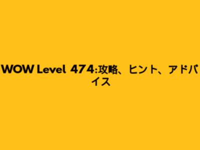 WOW Level 474:攻略、ヒント、アドバイス