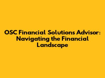 Unveiling the Role of an OSC Financial Solutions Advisor