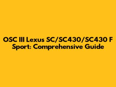 Hey car enthusiasts! Today, we're diving deep into the world of the OSC III for Lexus SC models, specifically the SC430 and the SC F Sport variants. If you're looking to learn more about these sleek rides, you've come to the right place. We'll explore everything from the basics to the nitty-gritty details, ensuring you have a solid understanding of these iconic Lexus models. Buckle up, and let's get started!