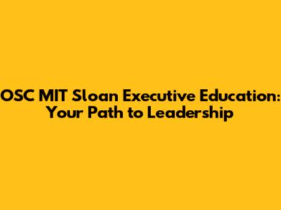 What is OSC MIT Sloan Executive Education?