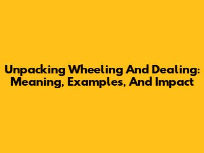 Unpacking Wheeling And Dealing: Meaning, Examples, And Impact