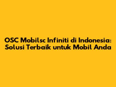 OSC Mobilsc Infiniti di Indonesia adalah pilihan terbaik untuk perawatan dan perbaikan mobil Infiniti Anda. Dengan teknisi yang terlatih, peralatan canggih, suku cadang berkualitas tinggi, dan pelayanan pelanggan yang ramah, OSC Mobilsc memberikan solusi yang komprehensif untuk semua kebutuhan mobil Infiniti Anda. Jika Anda memiliki mobil Infiniti, jangan ragu untuk mempercayakan perawatan dan perbaikan mobil Anda kepada OSC Mobilsc. Mereka akan memastikan bahwa mobil Anda selalu dalam kondisi prima dan memberikan pengalaman berkendara yang terbaik. Kunjungi situs web mereka atau hubungi mereka hari ini untuk membuat janji atau untuk mendapatkan informasi lebih lanjut tentang layanan mereka.