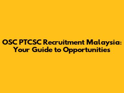 Hey everyone! So, you're looking into OSC PTCSC recruitment in Malaysia, huh? That's awesome! If you've landed here, chances are you're curious about what OSC PTCSC is all about and what kind of job opportunities might be popping up. Well, you've come to the right place, guys! We're going to dive deep into everything you need to know about this recruitment drive, what it entails, and how you can put your best foot forward. Think of this as your ultimate cheat sheet to navigating the OSC PTCSC Malaysia scene. We'll cover the basics, the nitty-gritty details, and some killer tips to make sure you're prepped and ready to impress. So, grab a cuppa, settle in, and let's get this knowledge train rolling! We're talking about your potential future career here, so it’s worth giving it a good read.
