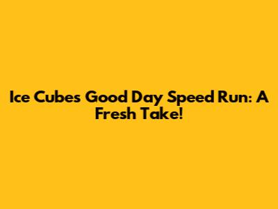 Ice Cube's 'Good Day' Speed Run: A Fresh Take!