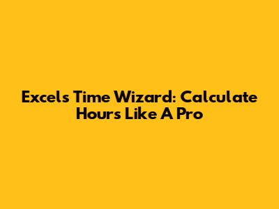 Excel's Time Wizard: Calculate Hours Like A Pro