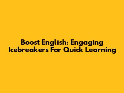 Boost English: Engaging Icebreakers For Quick Learning