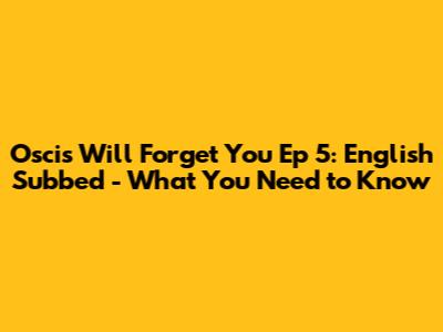 Hey guys! So, you're looking for the English subbed version of Oscis Will Forget You Episode 5, right? You've come to the right place! This K-drama has been seriously hooking us with its intriguing plot and captivating characters. Episode 5 is a pretty big one, so getting all the details in English is super important to fully dive into the story. We're going to break down what you can expect, where you might be able to find it, and why this episode is a must-watch for all you K-drama fans out there.