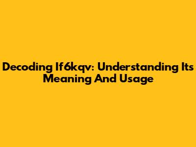 Decoding If6kqv: Understanding Its Meaning And Usage