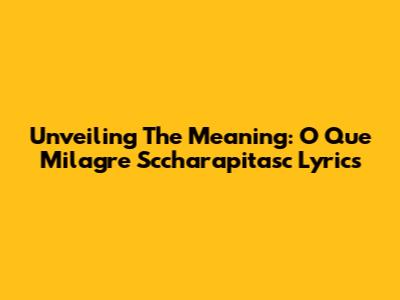 Unveiling The Meaning: 'O Que Milagre Sccharapitasc' Lyrics