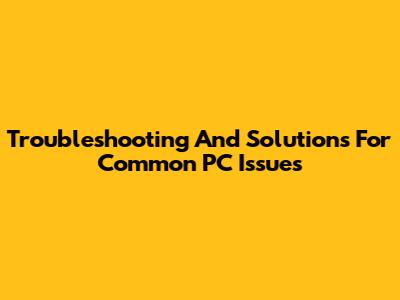 Troubleshooting And Solutions For Common PC Issues