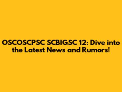 What We Know About OSCOSCPSC SCBIGSC 12 So Far