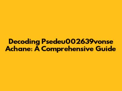 Decoding Psedeu002639vonse Achane: A Comprehensive Guide