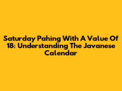 Saturday Pahing With A Value Of 18: Understanding The Javanese Calendar