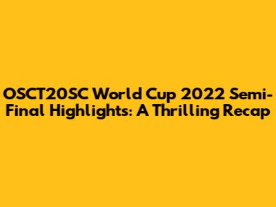 Hey sports fanatics! Buckle up, because we're diving deep into the electrifying OSCT20SC World Cup 2022 semi-finals. This was more than just a tournament; it was a rollercoaster of emotions, skill, and sheer determination. Let's relive those heart-stopping moments, analyze the key plays, and celebrate the incredible athletes who graced the field. Get ready for a comprehensive recap that will have you on the edge of your seat again. We'll be looking back at the nail-biting matches that decided who would compete for the ultimate prize, examining the strategies, the individual brilliance, and the unforgettable moments that defined this stage of the competition. From stunning goals to heroic saves, the semi-finals were packed with drama, proving why the World Cup is the pinnacle of international sporting events. So, grab your snacks, settle in, and let's journey back to the heart of the action, exploring the stories and performances that made the OSCT20SC World Cup 2022 semi-finals a truly unforgettable experience. Prepare to be amazed as we unravel the details of each match, providing insights into the tactics, the individual player performances, and the pivotal moments that shaped the outcomes. This recap aims to capture the essence of the semi-finals, giving you a comprehensive overview of the key events and the unforgettable moments that left a lasting impact on fans worldwide. This detailed analysis will help you to appreciate the skill, strategy, and sheer determination that defined these crucial matches. The OSCT20SC World Cup 2022 semi-finals were a testament to the power of sports to unite and inspire, and this recap aims to honor the spirit of competition and the athletes who gave it their all. These semi-final matches were not just games; they were battles fought with passion, skill, and unwavering determination. Let's explore the highlights, the lowlights, and everything in between that made this tournament so epic.