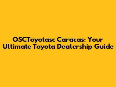Hey there, car enthusiasts! Are you on the hunt for a new Toyota in Caracas? Look no further, because we're diving deep into OSCToyotasc Caracas, a prominent Toyota dealership in the Venezuelan capital. This guide is your go-to resource for everything you need to know about OSCToyotasc, from the vehicles they offer to the services they provide. We'll explore why they're a top choice for Toyota lovers in Caracas, and how you can get the best deal on your dream car. So, buckle up, and let's get started!
