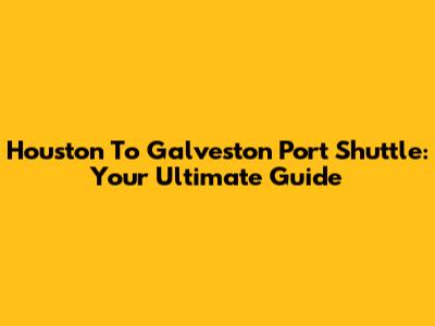 Houston To Galveston Port Shuttle: Your Ultimate Guide