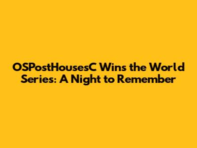 Before we get into the game itself, let's take a quick look at the journey that led OSPostHousesC to the World Series. Their path to the championship wasn't easy, to say the least. It was a rollercoaster ride of highs and lows, victories and setbacks. But through it all, the team showed incredible resilience and never lost sight of their goal. They started the season with a clear vision, a strong team, and a burning desire to win. They faced tough opponents, navigated challenging situations, and overcame numerous obstacles. Every win brought them closer to their dream, and every loss fueled their determination. From the early games to the playoffs, they battled their way through the competition with grit and determination. They never gave up, they never backed down, and they always believed in themselves. This unwavering belief was the cornerstone of their success. The team’s performance was nothing short of spectacular. They played with heart, passion, and skill. Their teamwork and camaraderie were evident in every game. The players supported each other, encouraged each other, and pushed each other to be their best. This unity was essential to their success. They consistently delivered impressive performances. The OSPostHousesC's journey to the World Series was a testament to their perseverance, dedication, and teamwork. It was a story of overcoming challenges, seizing opportunities, and achieving greatness. This victory wasn't just about winning a championship; it was about the journey, the struggles, and the triumphs that brought them here. And now, they've reached the pinnacle of their sport. Their journey has been nothing short of extraordinary. The road to the World Series was paved with hard work, dedication, and an unwavering belief in their abilities. It was a testament to their resilience, their teamwork, and their passion for the game. Every player contributed, every coach led, and every fan cheered them on. The entire team worked like a well-oiled machine, anticipating every move and supporting each other every step of the way. It was a collective effort, a shared dream, and a moment they will never forget. It was a story of overcoming obstacles, seizing opportunities, and achieving greatness.
