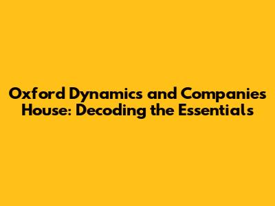 Hey there, data enthusiasts! Ever heard of Oxford Dynamics and wondered how it ties into the world of Companies House? Well, buckle up, because we're about to dive deep into this fascinating intersection. This article will be your comprehensive guide, unraveling the key aspects of Oxford Dynamics, its relationship with Companies House, and what it all means for you. We'll explore everything from registration details and filings to understanding the company's activities. So, grab a coffee (or your favorite beverage), and let's get started!