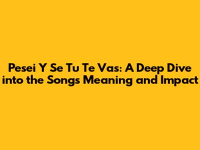 Hey guys! Have you ever stumbled upon a song that just gets you? One that resonates so deeply, it feels like it was written just for you? Well, let's talk about one of those songs: "P'esei Y Se Tu Te Vas." This title might seem a bit mysterious at first glance, but trust me, we're about to unpack everything and explore why this song has such a profound impact on so many people. We will explore the lyrics, the emotions, and the cultural context that make "P'esei Y Se Tu Te Vas" an absolute must-listen.