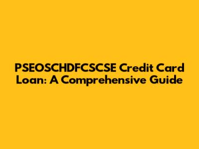 PSEOSCHDFCSCSE Credit Card Loan: A Comprehensive Guide