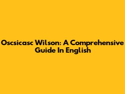 Oscsicasc Wilson: A Comprehensive Guide In English