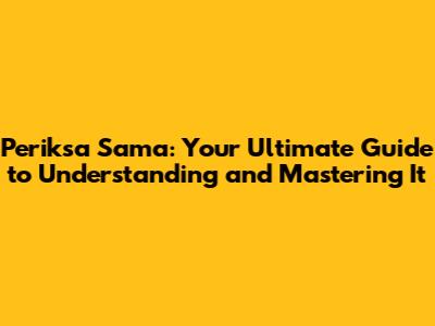 Hey guys! Ever heard of "Periksa Sama"? If you're scratching your head, no worries! This guide is your one-stop shop to understanding what it is and, more importantly, how to actually master it. We'll dive deep, breaking down everything you need to know, from the basics to advanced techniques. So, buckle up, because we're about to embark on a journey to become Periksa Sama pros! Ready?