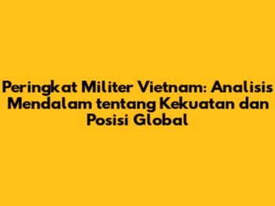 Jadi, gimana guys? Semoga obrolan kita tentang peringkat militer Vietnam ini bermanfaat ya! Jangan lupa untuk terus mengikuti perkembangan militer dan geopolitik dunia. Sampai jumpa di artikel selanjutnya!