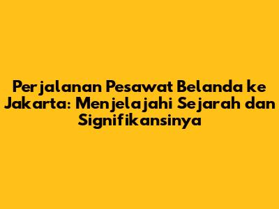 Perjalanan pesawat Belanda ke Jakarta membuka lembaran sejarah yang kaya, menandai titik penting dalam hubungan antara Belanda dan Indonesia. Kisah ini tidak hanya tentang moda transportasi, tetapi juga tentang politik, ekonomi, dan perubahan sosial yang membentuk lanskap Indonesia modern. Mari kita selami perjalanan yang menarik ini, mengungkap detail, nuansa, dan dampak dari pesawat Belanda ke Jakarta.