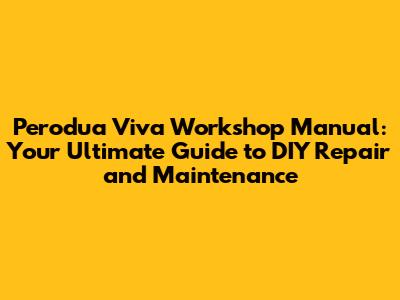 Hey guys! If you're a proud owner of a Perodua Viva, you know it's a fantastic little car. But, like all machines, it needs a little TLC from time to time. That's where a Perodua Viva workshop manual PDF comes in super handy. It's your secret weapon for everything from routine maintenance to tackling more complex repairs. Think of it as your car's personal instruction manual, filled with all the info you need to keep your Viva running smoothly and saving you some serious cash along the way. In this guide, we'll dive deep into why a workshop manual is essential, where to find a reliable Perodua Viva workshop manual PDF, and how to use it effectively. Trust me, it's easier than you think, and the benefits are well worth the effort. Let's get started!