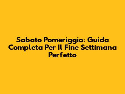 Sabato Pomeriggio: Guida Completa Per Il Fine Settimana Perfetto