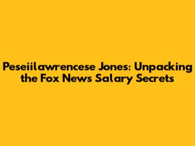 Hey everyone, and welcome back! Today, we're diving deep into a topic that always sparks curiosity: the salaries of folks working in the media spotlight. Specifically, we're going to tackle the question on everyone's mind: What is Peseiilawrencese Jones's Fox News salary? Now, I know what you're thinking – digging into someone's paycheck can feel a bit nosy, right? But honestly, in the world of broadcasting and journalism, especially at a major network like Fox News, these figures are often the subject of intense speculation. It's not just about the money; it's about understanding the value placed on talent, experience, and the influence these personalities wield. So, buckle up, guys, because we're going to explore what we know, what we can reasonably infer, and why these salary discussions are so darn interesting in the first place. We'll be looking at industry standards, potential factors influencing compensation, and of course, any publicly available information or credible reports that shed light on Peseiilawrencese Jones's earnings. It’s a complex puzzle, but one that’s definitely worth putting together if you’re interested in the behind-the-scenes of big-time television news.