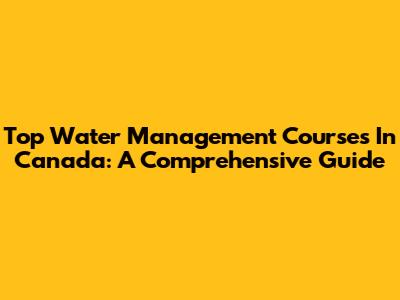 Top Water Management Courses In Canada: A Comprehensive Guide