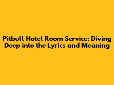 Hey music lovers! Ever found yourself vibing to a song and thinking, "What's the real story behind this?" Well, today we're taking a deep dive into Pitbull's iconic track, "Hotel Room Service." This song isn't just a catchy beat; it's a whirlwind of energy, confidence, and a touch of mischief. We'll break down the lyrics, explore the meaning, and uncover why this track has remained a party anthem for so many years. So, grab your headphones, get ready to turn up the volume, and let's unravel everything there is to know about "Hotel Room Service."