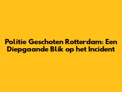 De Feiten: Wat We Weten Over de Politie Schietincident in Rotterdam